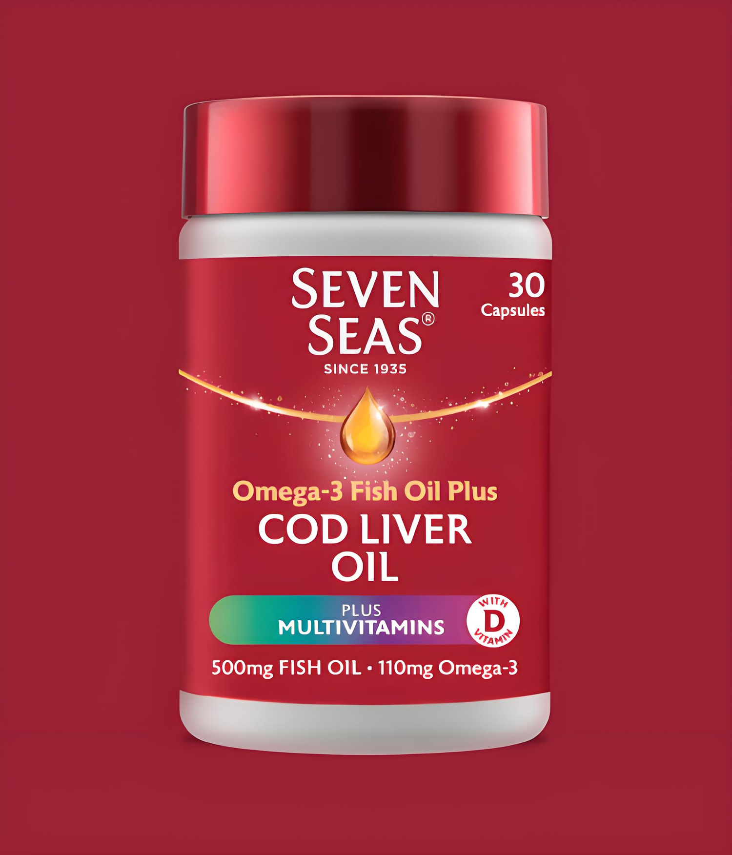 Seven Seas Cod Liver Oil plus Multivitamins contains Omega-3 fatty acids that support Brain² and Body¹-⁴, and Vitamin D that supports Bones and the function of the Immune System⁴. Plus, Niacin to support your Energy⁵. Getting enough Omega-3 is essential because your body can’t produce it from scratch.